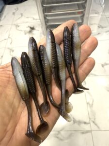 We have these in bulk (100 per pack) for a limited amount. they are 3″ swimbait bodies in Electric Shad. They fit our swimbait head perfectly. Once they are gone, they are gone. $35 for 100 is dirt cheap for this type of swimbait. The baits are brand new and work great for freshwater or saltwater.