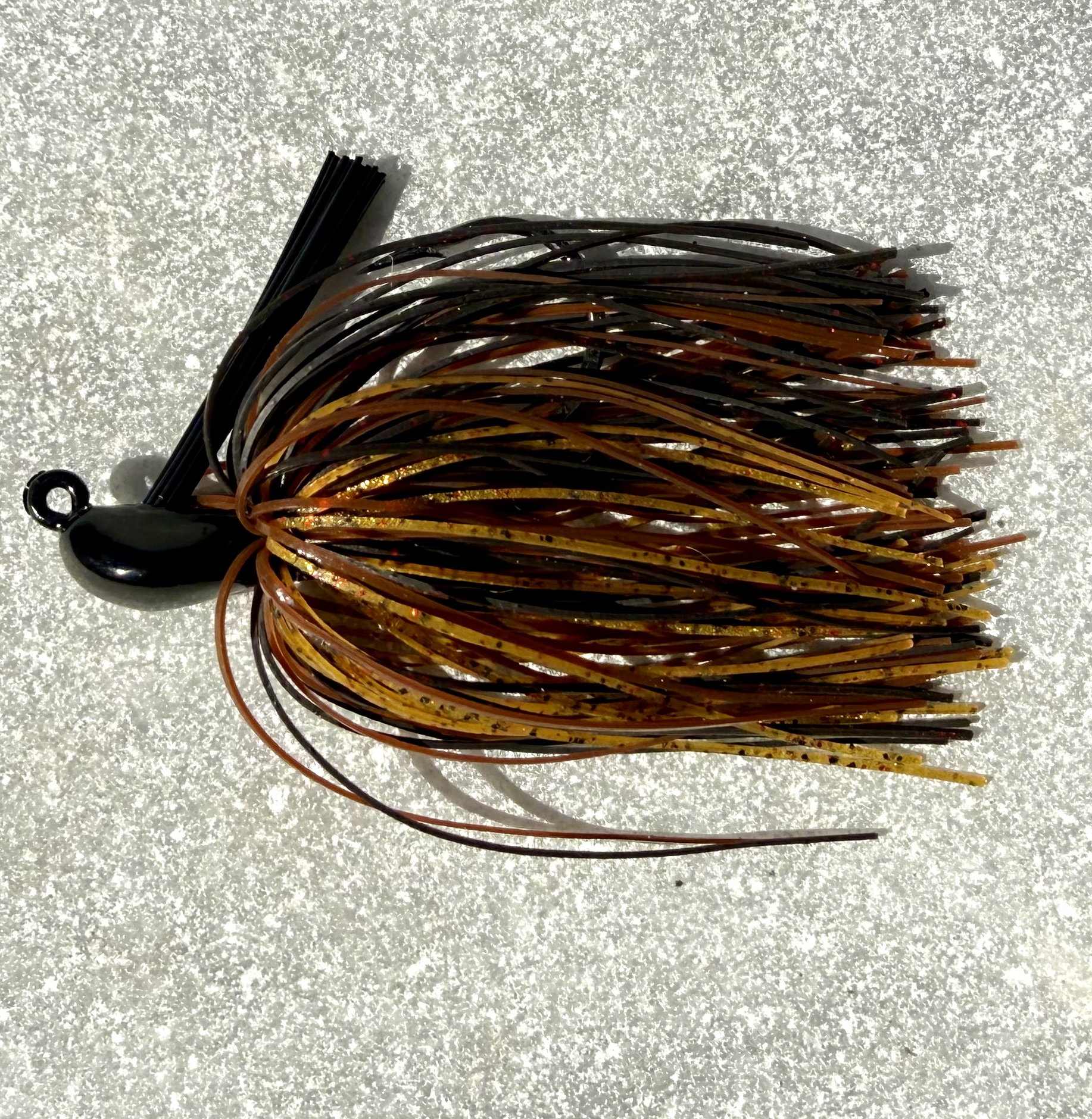 If you have ever fished in clear water or in the winter, you know that crawfish colored jigs have always been one of the more productive colors around. This jig has some Brown, black and crawfish flash and is hand-tied as all of our jigs are. We are offering it in our Casting style as well as our Football style in all sizes. Great color with a brown or black style trailer……